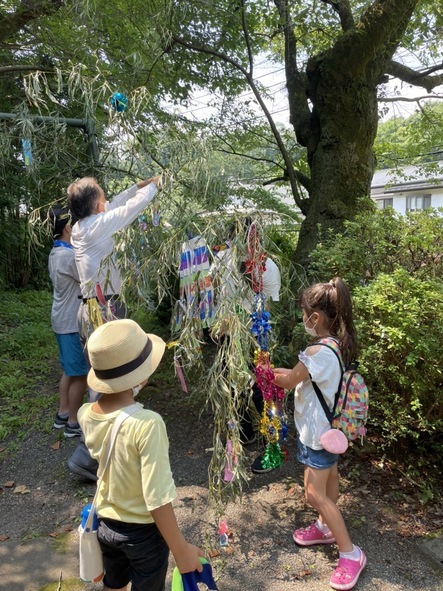 コロナ禍なので例年より規模を縮小し、育成会だけでできるものにし 子どもたちは各々折り紙で作った七夕飾りと短冊を飾り付けました。 育成会のメンバーで集まることが久しぶりだったので、 子どもたちはとても楽しそうでした。 (惣領分子ども会役員さん談) 子どもも大人も一緒になって楽しく飾り付けできて良かったですね。 | |