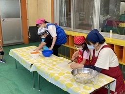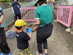 梅雨に入り草木が日毎に伸びています。園内の紫陽花も雨に濡れ日々色を増してまいりました。 ぽっかぽかファーム(農園)の野菜は6月に入り、ぐんぐんと大きくなっていいます。今月はぽっかぽかファームの活動を通して以下のような活動を楽しみました。 ・看板、掲示板作り(保護者の方々がデザイン〜色塗りまでして頂きました) ・屋根付きベンチ作り(地域の<竹あかり>さんが保護者ボランティアさん、卒園生ボランティアさん、職員に対してご指導・サポートして頂き、作成しました。) ・じゃがいもの収穫→カレー作り(調理体験) ・新玉ねぎの持ち帰り(地域の関野さんよりたくさんの玉ねぎを頂きました) ・新玉ねぎの味噌汁作り(調理見学、試食) ・いちご、杏の収穫→ジャム作り→試食(調理見学、試食) ・きゅうりの収穫→試食(調理見学、試食) ・さつまいもの苗植え(地域の関野さんや木村植物園さんに苗を譲っていただきました) ・親子草むしり(園児、保護者、職員でで園内、ファーム内の草むしりを行いました) ファームを始めて3ヶ月。 子どもも、大人も、ぽっかぽかファーム(農園)に魅力を感じ、より良いファームにしていくために知恵を出し合い、協同することでたくさんの素敵な活動が生まれています。 そんな活動を通して、自然のもつエネルギーの不思議さや人と関わり合うことの喜びを肌で感じています。 そして地域のたくさんの方々にご協力をいただき、素敵なファームになってきました。本当に日々感謝です。 今後も子供も親も共に育ち合う園づくりを想像していきたいです |