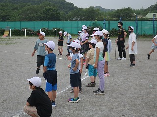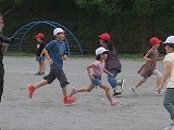 曇り空の下、本日の昼休みはたてわり集会が校庭にて行われました。集会委員会が企画したのは、たてわり班による「こおり鬼大会」でした。8班あるたてわり班を2班ずつグループにして、4グルーブの対戦型の凍り鬼大会です。第一試合は1班6班(赤)対3班4班(白)でした。「こおり鬼ごっこ」は鬼にタッチされると動けなくなり、鬼以外にタッチされると動けるようになるというルールですが、今回は相手チームにタッチされると動けなくなり、味方にタッチされると動けるというルールでした。第二試合は2班7班(赤)対5班8班(白)でした。熱中症対策でマスクを外し、元気に走り回る土屋っ子たち。試合後、勝ち負けに関係なく、応援していた児童から拍手が沸き起こりました。