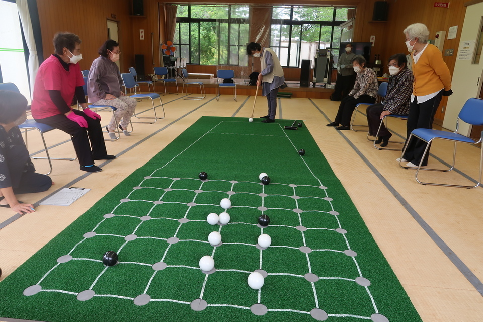 今年は参加者が12人集まり、その内半数の方が初チャレンジでした。 (サロン送迎部会にご協力いただき、七国荘まで送迎していただきました ボッチャでは、七国荘の大野さんにルールを教えてもらい、白い的ボールに向け、赤と青のボールを投げました。 ※ ボッチャは白い的ボールにたくさん近づけた方が勝ちというルールです。 白い的ボールの場所は毎回初めに投げるためその都度難しさが変わり、的ボールから遠い色のチームが投げるというルールもあり、駆け引きのある面白さがあります。 囲碁ボールも大盛り上がり 初めての方は、最初は力加減がわからず、苦戦していましたが、徐々にコツを掴み、あっという間に上達し、3連3つや4連が生み出され盛り上がりました。 ※囲碁ボールは、黒と白が交互に10球打ち、縦横斜めにたくさん並べた方が勝ちというルールです。最後の一打で大逆転がある面白さがあります(*^^*) やってみたい方は、七国荘で毎月実施されていますのでぜひご参加ください 囲碁ボール:毎月第2火曜10:30〜12:00 ボッチャ :毎月第3水曜10:30〜12:00 【次回の土屋はつらつ学級】 6月13日(月)10:00〜「ハザードマップの見方&防災知識」 |