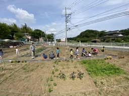 「ぽっかぽかファーム」を作って2ヶ月が過ぎました。 園で育てている野菜もそれぞれの家庭で育てている野菜も元気に育っています。 5月の下旬に保護者や地域の方にご協力いただき、 「ぽっかぽかファーム」の看板とみんながくつろげる大型ベンチができました。 看板はPTA保護者の有志にご協力をいただき、イラストの下案からペンキ塗りまで行いました。地域の皆様にも関心を持っていただけるような愛らしい看板ができました。 大型ベンチ作りに関しては、全面的に土屋上惣領「竹あかり」の皆様にご協力をいただきました。 竹で作った屋根付き大型ベンチは支柱となる太い竹の切り出しから、子供たちがささくれに引っかからないよう綺麗に細部を削っていただくところまで事前に仕上げてきてくださいました。 今回のベンチは寝転がっても良いように大きめの設定となっています。 作成にあたっては、有志のお父さんボランティアさんにも 支柱を深くまで埋め込むため穴を50地レンチほどあけたり、 竹を麻紐で編んだりするご協力をいただきました。 炎天下だったためみんな汗びっしょり。 今後も保護者や地域の皆様と連携を図りながら、ファームがみんなの憩いの場となるよう、協同的に進めていきたいです。 近くをお越しの際はぜひお立ち寄りくださいね。 |