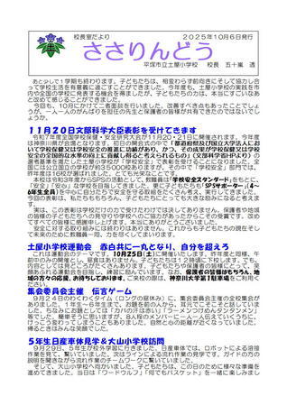 - 2025/10/10 【土屋小学校】学校だよりささりんどう10月号