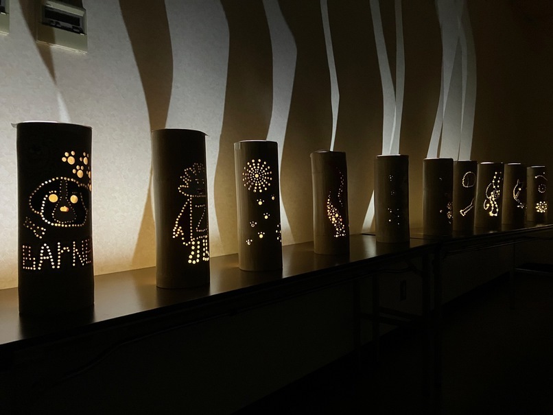 土沢中学校の生徒の皆さんが探究活動で製作した「竹灯籠」と「蛍かご」のイルミネーション展示を行っております。是非ご覧ください!
