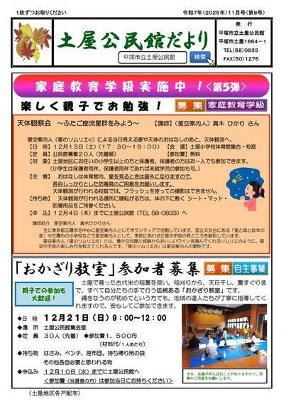 - 2025/11/11 土屋公民館だよりR7・11月号を発行しました。