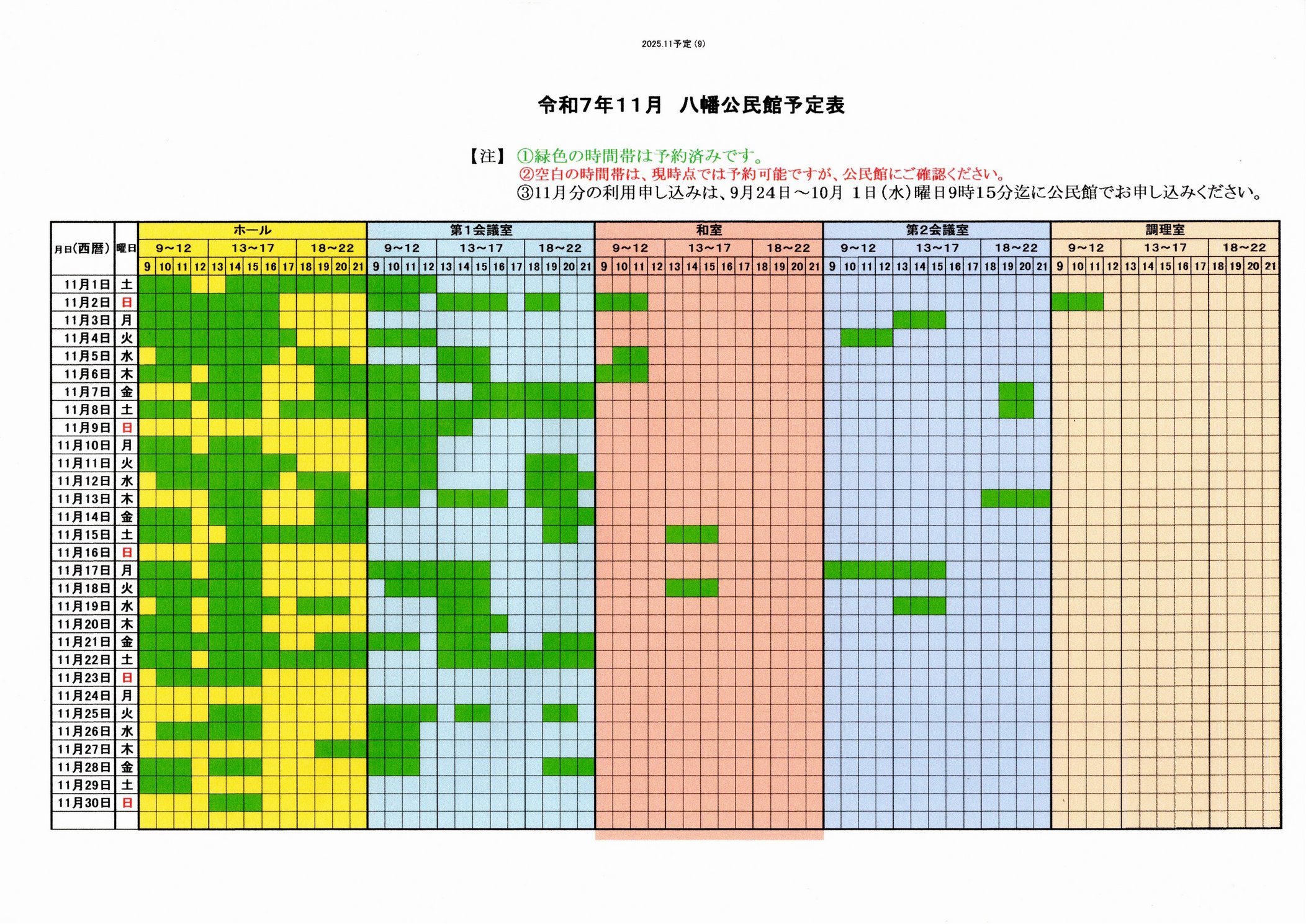 - 2025/10/07 令和7年11月公民館利用申し込み状況