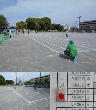 係別に分かれて、明日のシミュレーションをしたり、会場の準備をしたりとそれぞれが役割を持って活動しました。 運動会をよりよいものにしようとする姿勢に、たのもしさを感じました。 子どもたちが下校した後は、先生方でコースなどのラインを引き直し、テントをたて、会場準備は完了しました。 明日は9:00開会(保護者入場8:45開始)の予定です。 ご来場お待ちしております。 なお、延期となる場合のみ、6:30頃までにCocooのメール配信します。 |