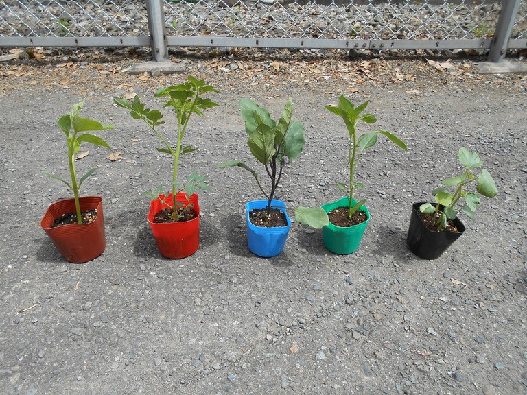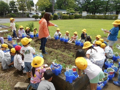 子どもたちは、自分で決めて苗を購入しました。 Flower&Cafe 大磯花帆槻(おおいそはなほづき)さんに来ていただき、実際にお店の人とやり取りをして夏野菜の苗を購入する体験をしました。 1年生の時に朝顔を育てた鉢に植え替えて、育てていきます。 「大きくなあれ」の願いを込めて丁寧に植え替え、土を入れていました。 生活科の目標は「具体的な活動や体験を通して、身近な生活に関わる見方・考え方を生かし、自立し生活を豊かにしていく」です。 子どもたちが、友だちと一緒に野菜を育てることで、視野が広がり、生活が豊かになっていくことを願っています。 最後にクイズです。 <問題>次の苗は、どんな夏野菜になるでしょう? ![]() <答え> 左から 茶:キュウリ、赤:トマト、青:ナス、緑:ピーマン 黒:オクラ |