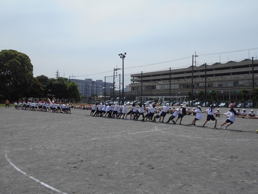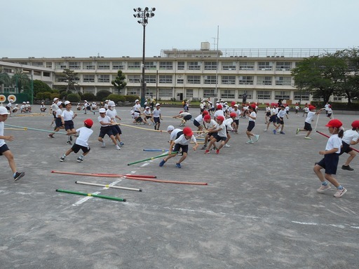 団体種目の練習の様子をご紹介します。 1・2年生の団体種目は「Bang Bang 玉入れ☆」です。 ダンスと玉入れのコラボレーション! 練習から一生懸命やっていて、運動場に元気な声が響きます。 かわいいダンスも、元気な投球も見どころです。 3・4年生の団体種目は「八幡人」です。 赤組と白組が、60本以上の棒や短縄を取り合います。 瞬発力や俊敏さ、観察力も必要となる競技に練習にも熱が入ります。 入場後の戦いをイメージした大きく身体を使った表現にも注目です。 5・6年生の団体種目は「安心してください、綱、引いてますよ」です。 高学年の力と技とチームワークのぶつかり合い! 練習から真剣そのもの、力強さと迫力に圧倒されます。 その他、各学年ごとで走る種目を行います。 個人形式あり、リレー形式あり、バラエティに富んだ「走の運動」に、ご期待ください。 |
