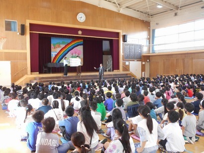児童会からは、児童の代表が初めて全校朝会に参加した1年生に言葉かけをしました。 校長先生の話では、「やわた 3つのこころ」の中の「やさしくたくましく」の話をしました。 6年の先生からは、あいさつの大切さの話がありました。 最後に1年生が、2年生から6年生に「よろしくお願いします」のあいさつをしました。 大型連休明けですが、子どもたちは元気に登校しています。 | ||