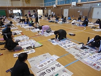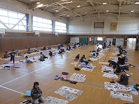 今日、5年生と4年生が体育館で書き初めを行いました。