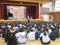 体育館で修了式と離退任式を行いました。 修了式では、校長先生からのお話と児童指導の先生から春休みの過ごし方についての話がありました。 つづいて、離退任式。最初に、5年生の児童代表が一人一人への言葉が入った挨拶をしました。次に、離退任する7名の先生方からは子どもたちへメッセージを送りました。最後に、離任する先生方を送る気持ちで全員で「校歌」を歌いました。 今年度の「”やわた”ちいき情報局」の更新はこれで終わりです。1年間ご覧いただきありがとうございました。来年度も八幡小学校をよろしくお願いいたします。 | ||