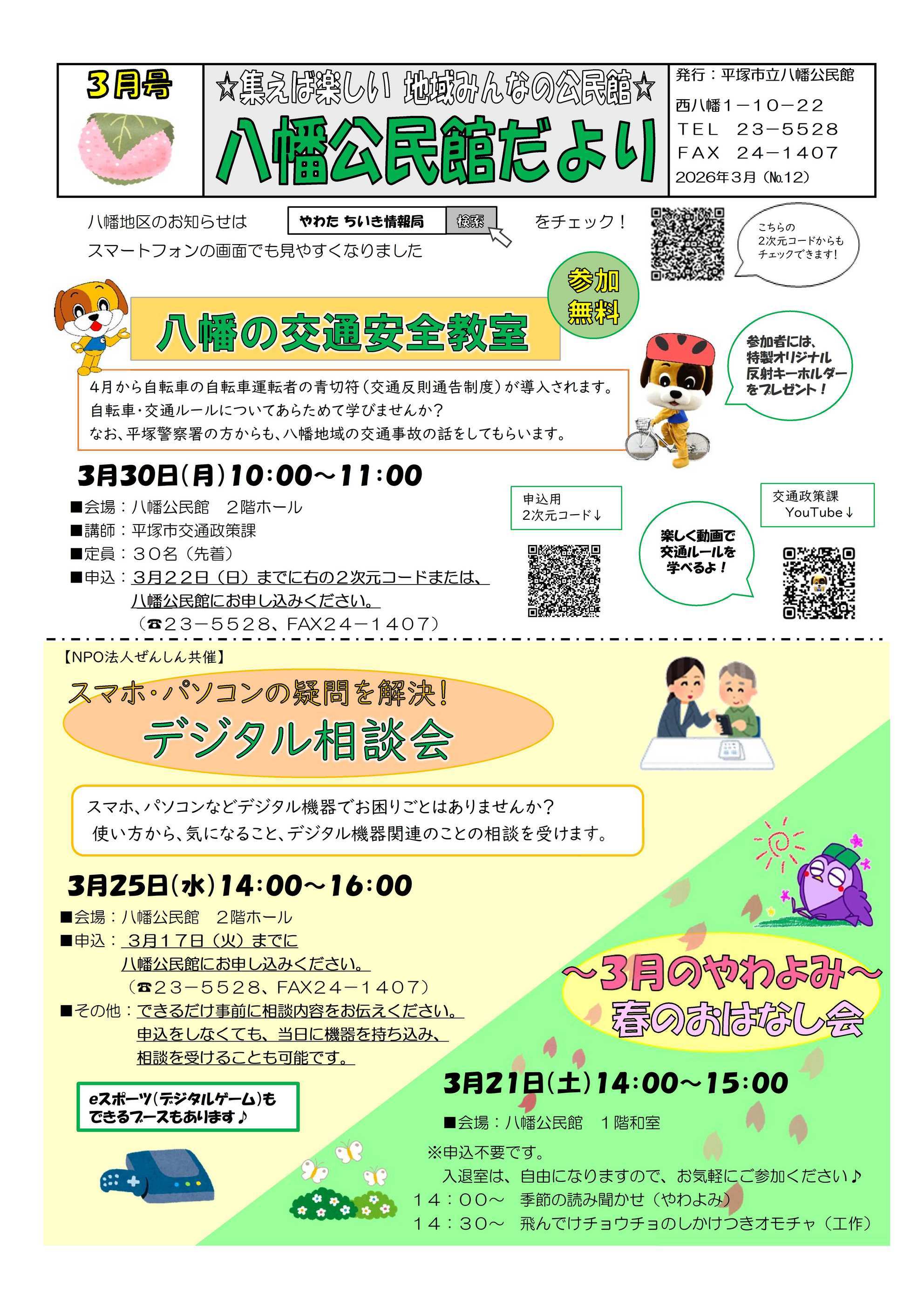 - 2026/04/09 八幡公民館だより3月号を発行しました