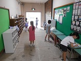 八幡小学校の音楽室は、特別教室棟(体育館の1階)にあります。 音楽専科は原田先生です。3年生以上の音楽を担当していて、子どもたちが、音楽を楽しみ、音楽を好きになるようにと、いつも授業を工夫しています。 音楽室の廊下の壁には、子どもたちに、音楽の楽しさを味わってほしいという思いから、誰でも演奏していい木琴が掛けてあります。 今日は、3年生の授業でプロコフィエフの『ピーターとおおかみ』を扱っていました。 今年度の校内音楽会は12月に予定されています。すでに子どもたちの準備は始まっています。 | |