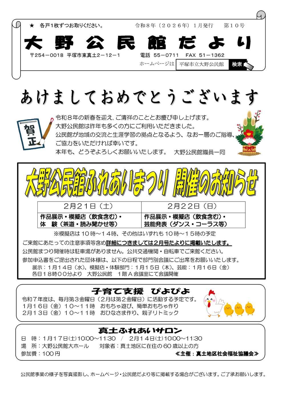 大野公民館だより 令和8年(2026)1月発行 第10号を掲載します