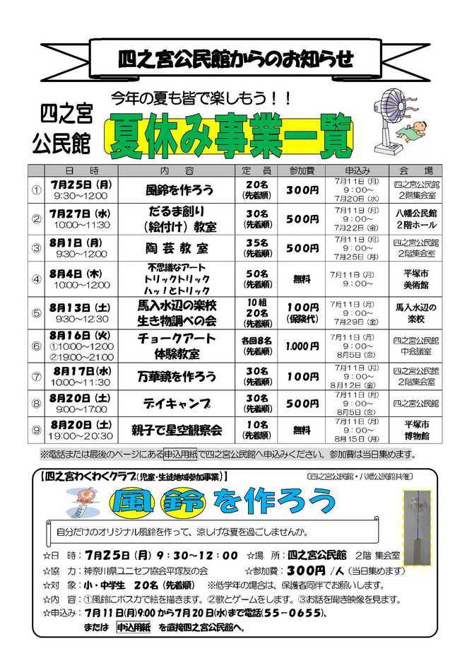 四之宮公民館からのお知らせ(夏休み事業一覧)