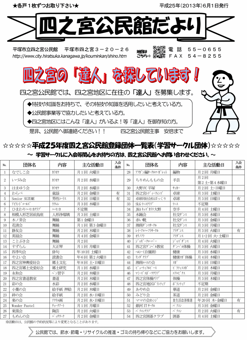 四之宮公民館だより 平成25年(2013年)6月1日発行
