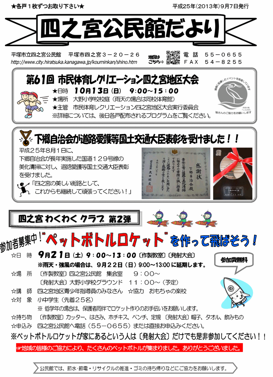 四之宮公民館だより 平成25年(2013年)9月7日発行