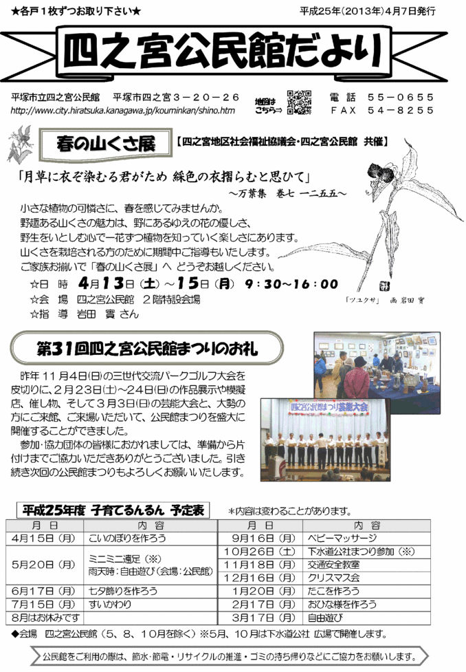 四之宮公民館だより平成25年(2013年)4月7日発行