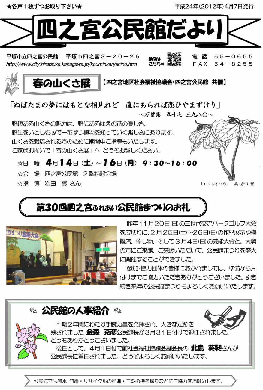 四之宮公民館だより 平成24(2012)年4月7日号 平塚市立四之宮公民館