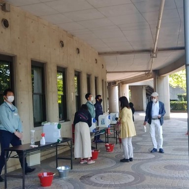 除菌水配布の様子 新型コロナウイルス関係