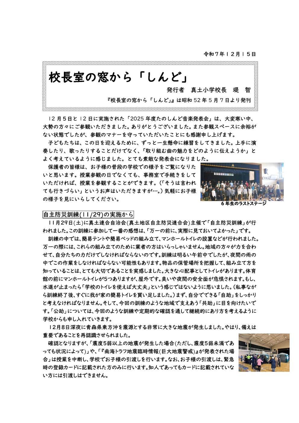 校長室の窓から「しんど」 令和7年12月15日