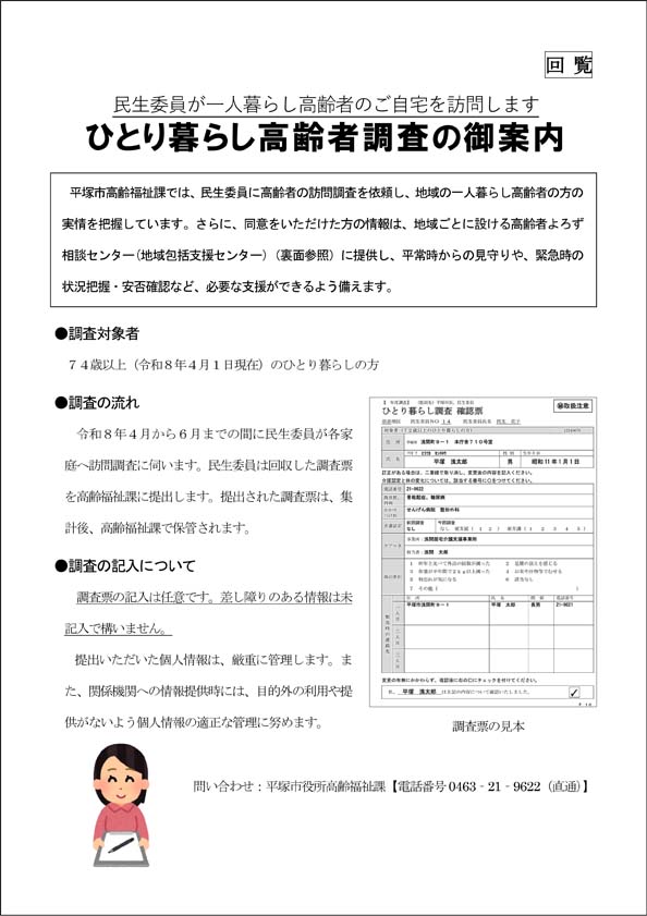 【回覧板】「ひとり暮らし高齢者調査」のご案内