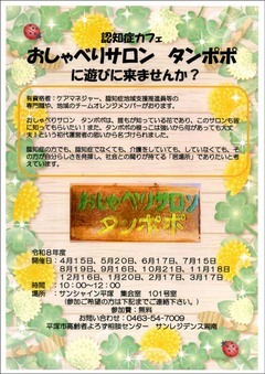 【回覧板】認知症カフェ『おしゃべりサロン タンポポ」に遊びに来ませんか