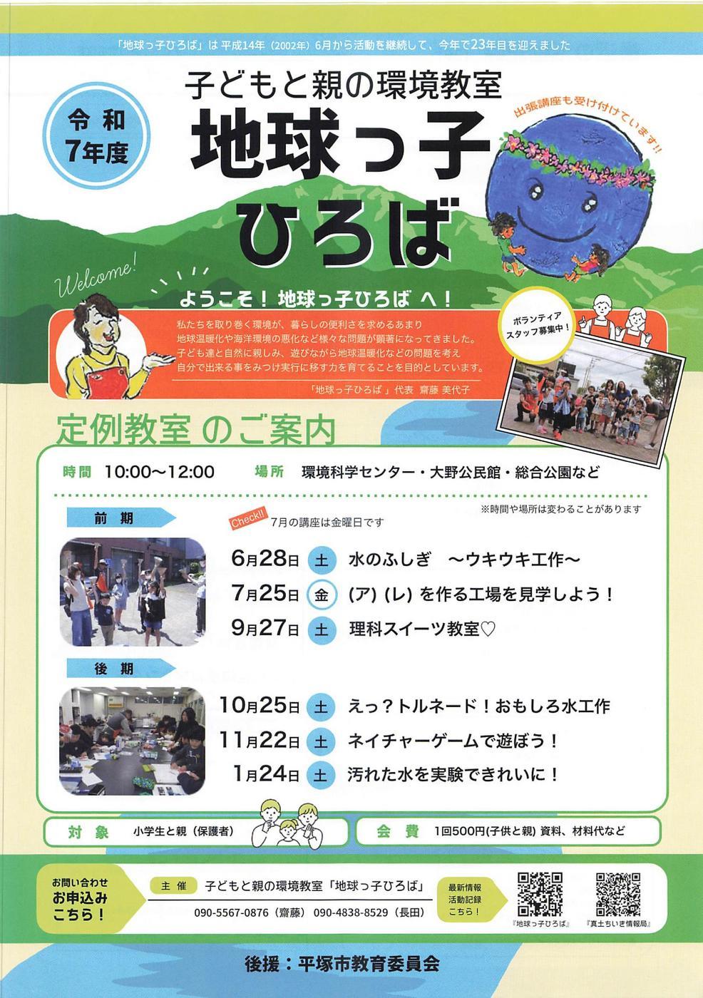 ※年間カレンダー 地球っ子ひろば 令和7年度定例教室のご案内