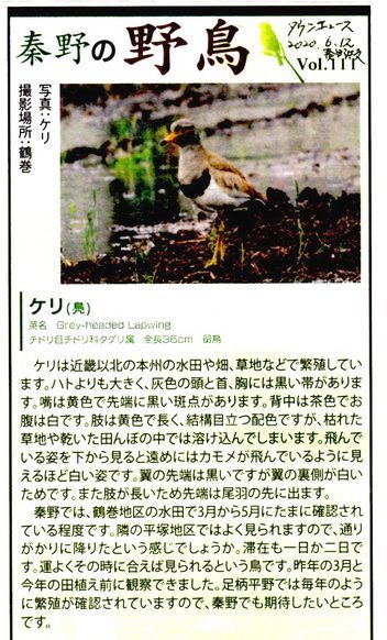【記事紹介】 「秦野の野鳥」ーケリ(鳧)-