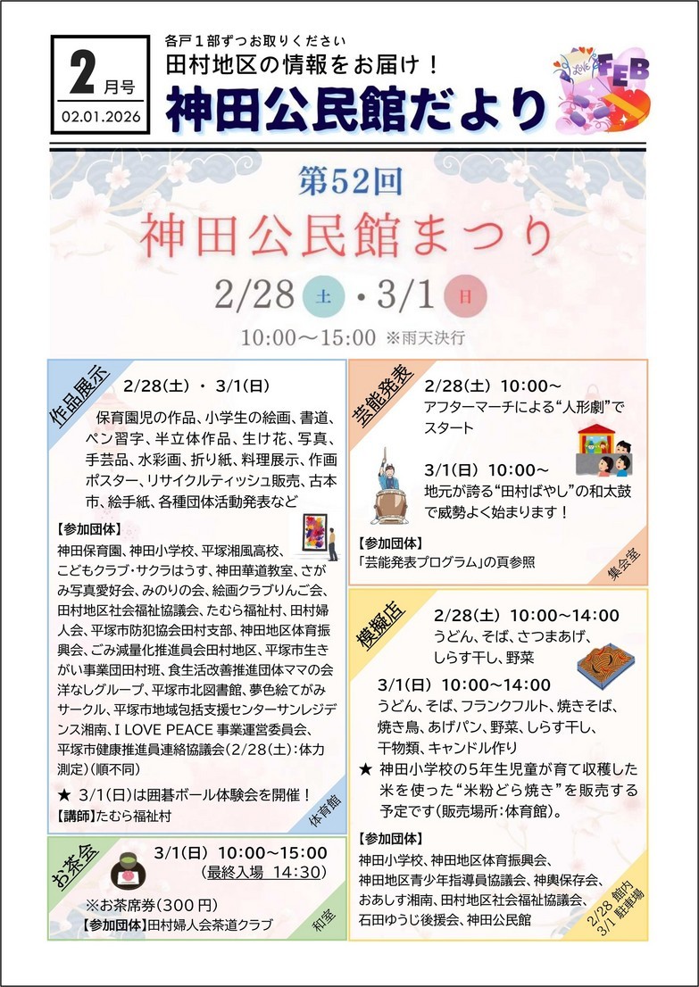 神田公民館だより令和8年2月号を発行しました