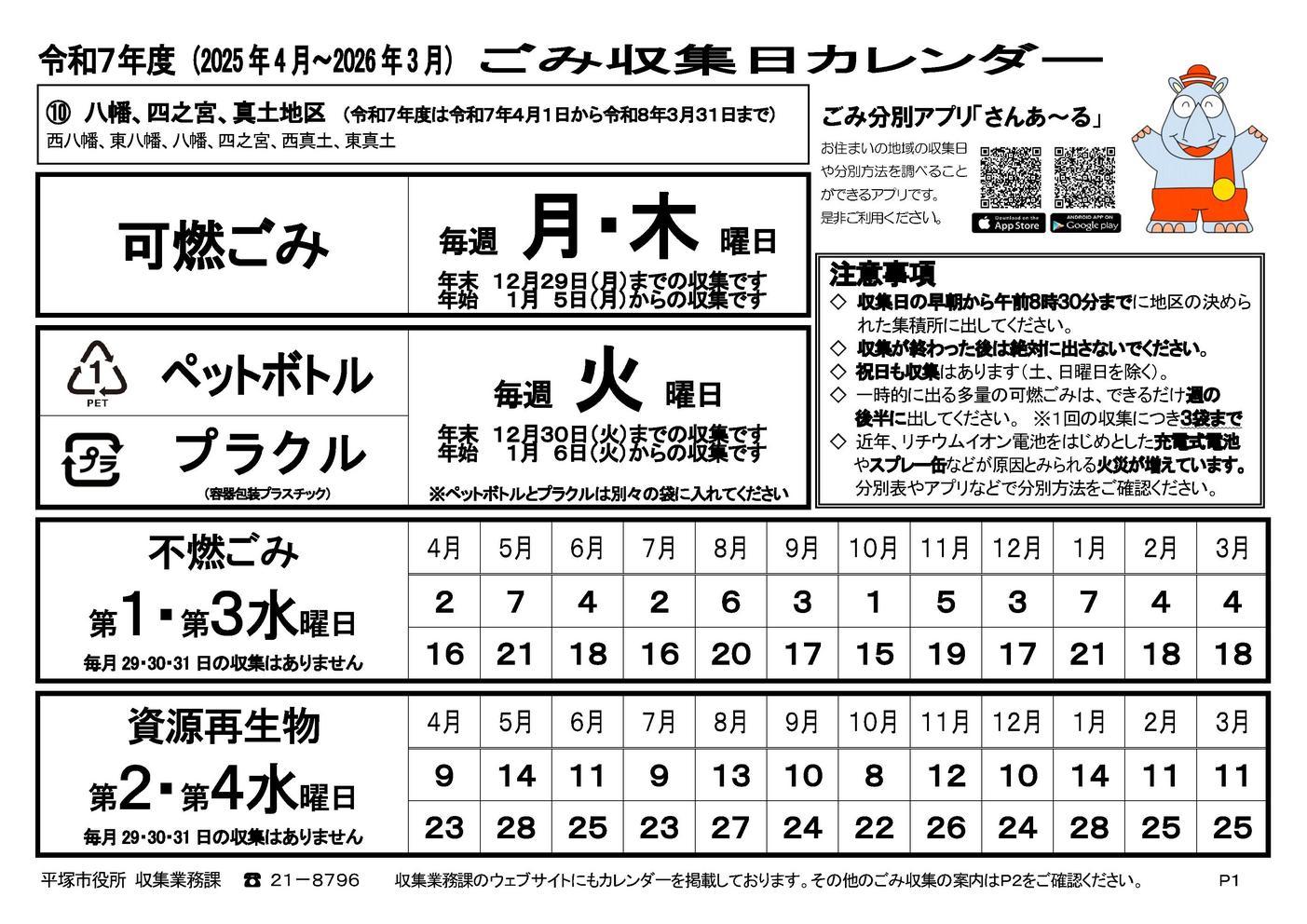 ごみ収集日カレンダー 令和8年度(2026年4月~2027年3月)