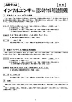 【回覧板】高齢者の方のインフルエンザと新型コロナウイルス感染症予防接種