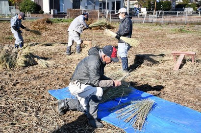 お飾り作り教室で使う稲わらの「藁すぐり」をしてくださいました