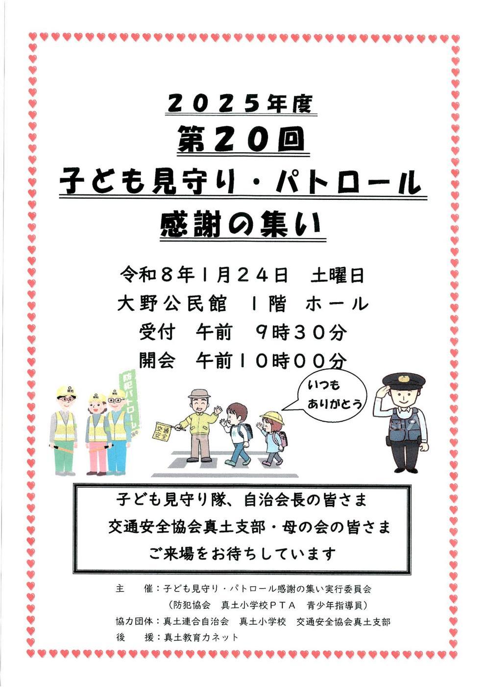 第20回子ども見守り・パトロール感謝の集い 令和8年1月24日(土) 大野公民館1階ホール 開会10:00