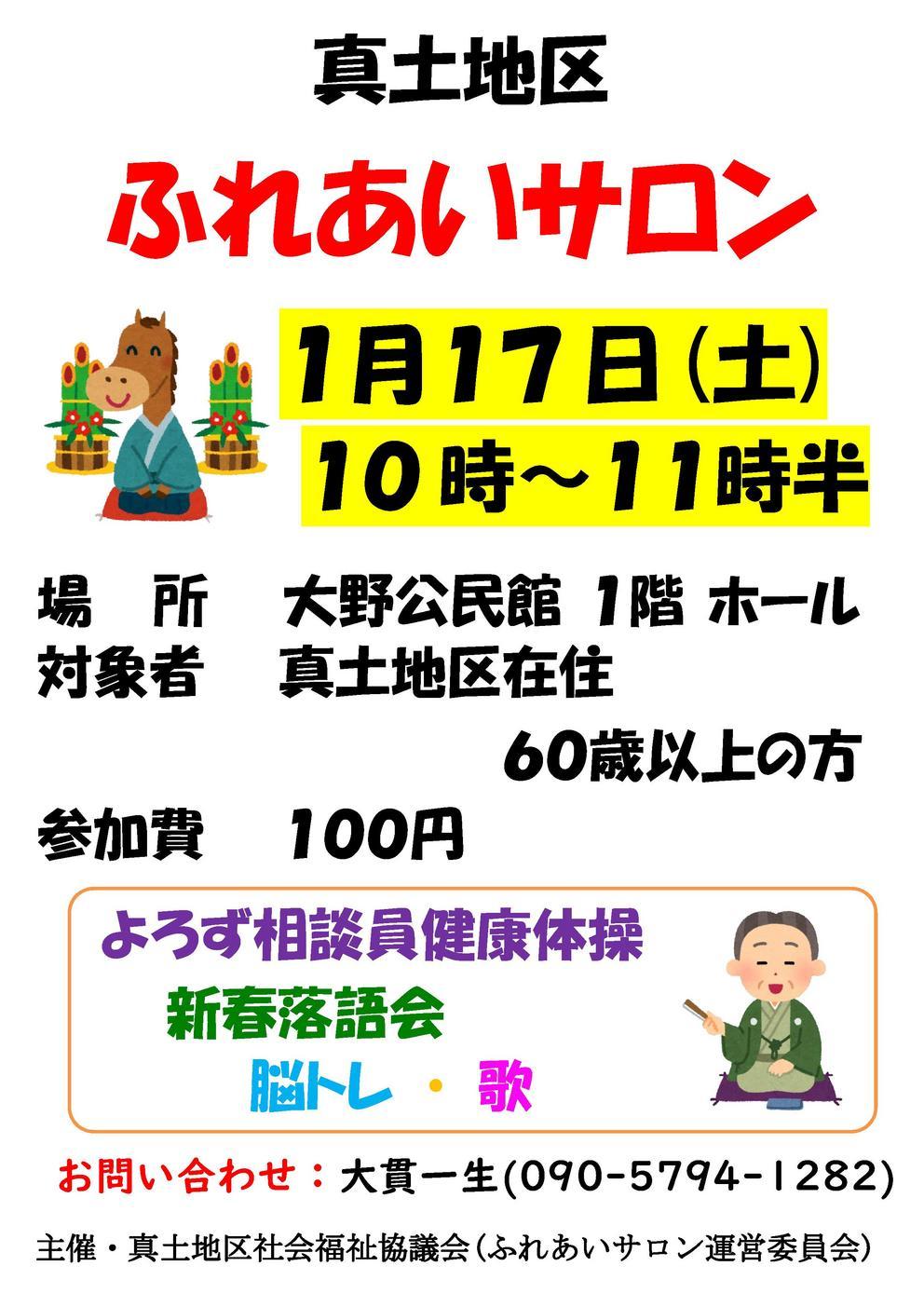 真土ふれあいサロン 2026年1月開催のご案内 1月17日(土) 10時00分 ~ 11時30分 大野公民館 1階 ホール