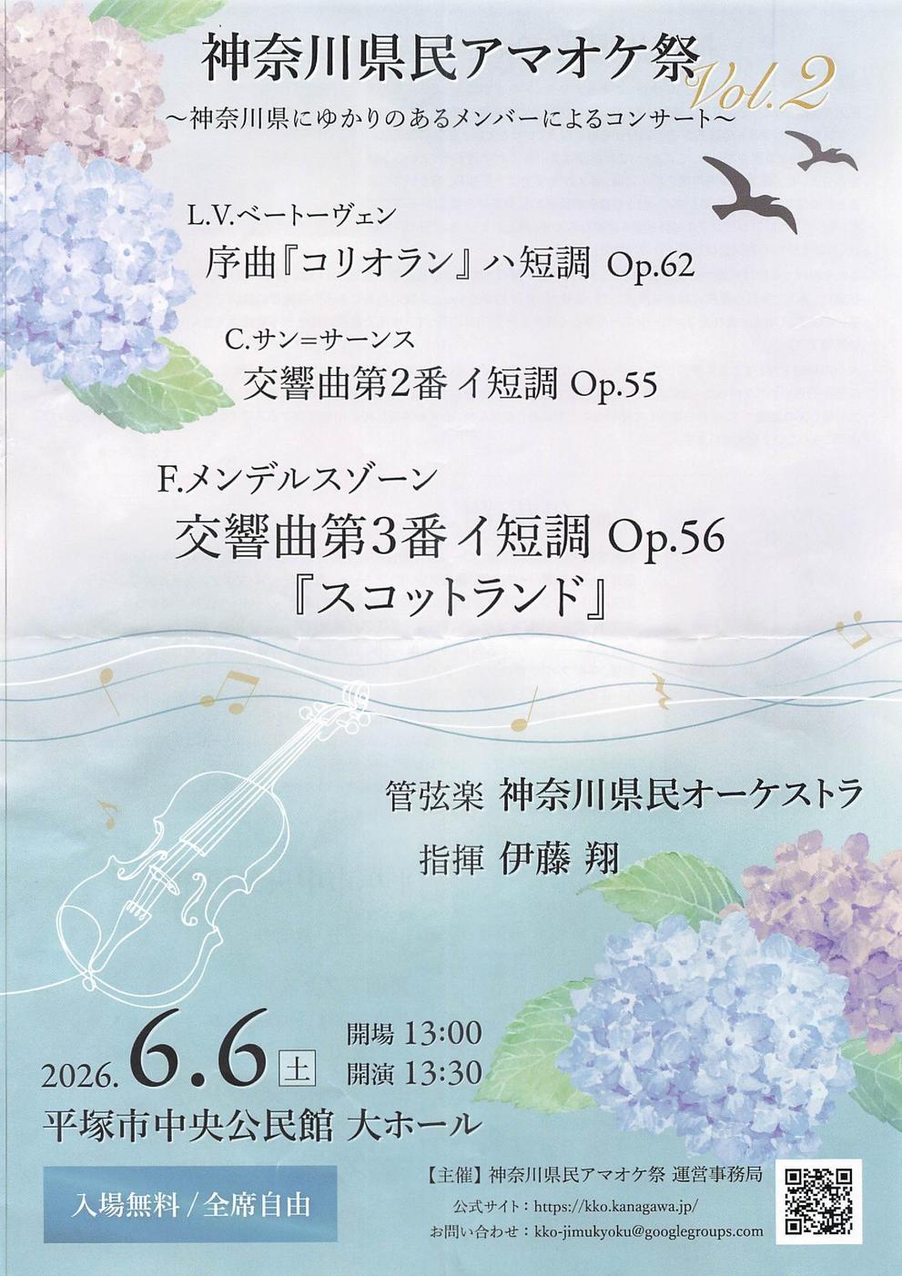 神奈川県民アマオケ祭が平塚市中央公民館大ホールにて開催されます