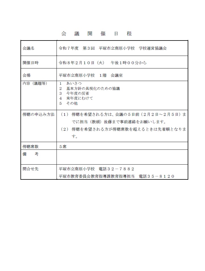 令和7年度第3回学校運営協議会のお知らせ