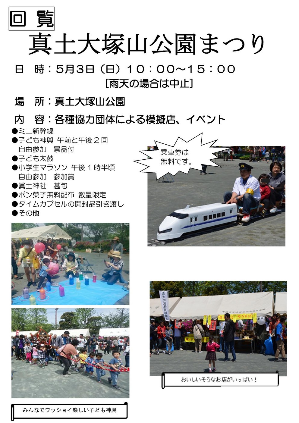 第30回『真土大塚山公園まつり』開催のご案内 5月3日 10時~15時 真土大塚山公園内