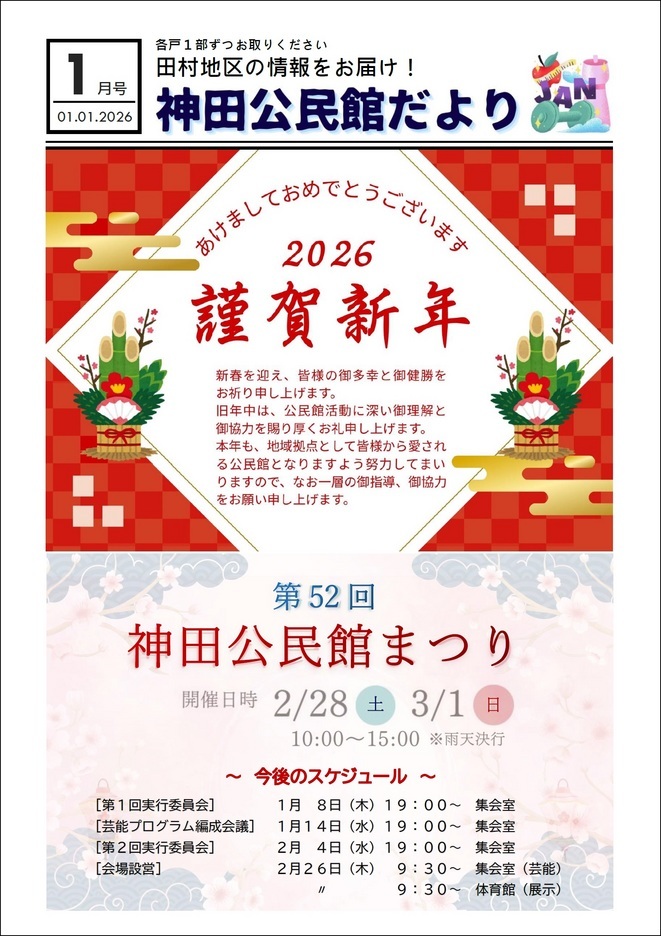 神田公民館だより令和8年1月号を発行しました