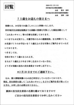 【回覧板】75歳をお迎えの皆様へ