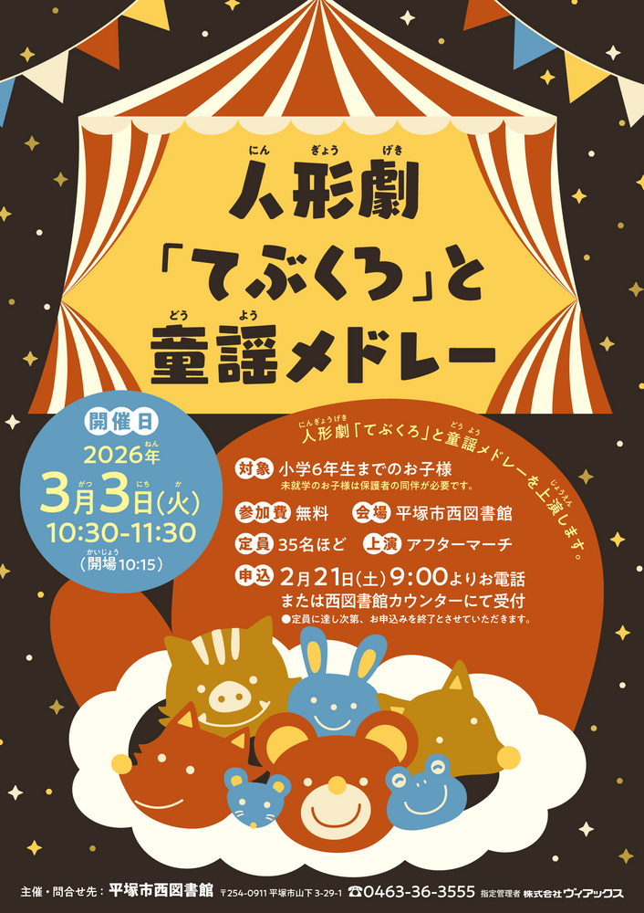 【西図書館】人形劇「てぶくろ」と童謡メドレーを上演します!