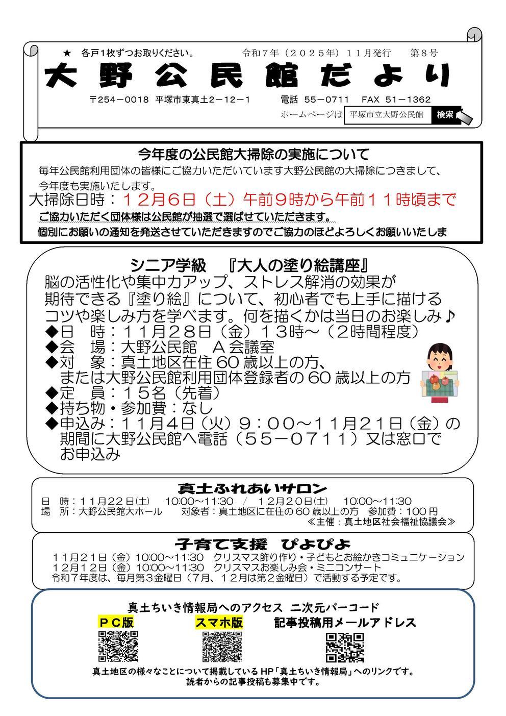 大野公民館だより 令和7年(2025)11月発行 第8号を掲載します