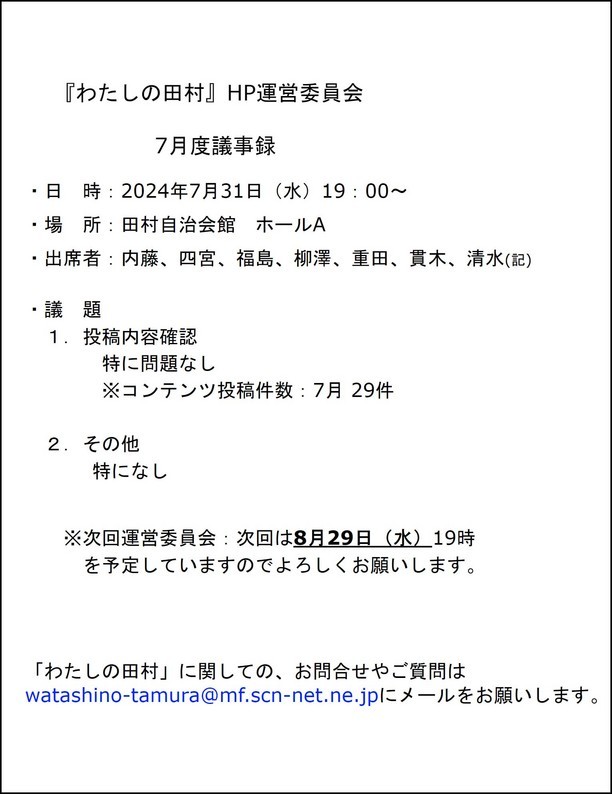わたしの田村2月度HP運営委員会開催(次回は3月25日です)